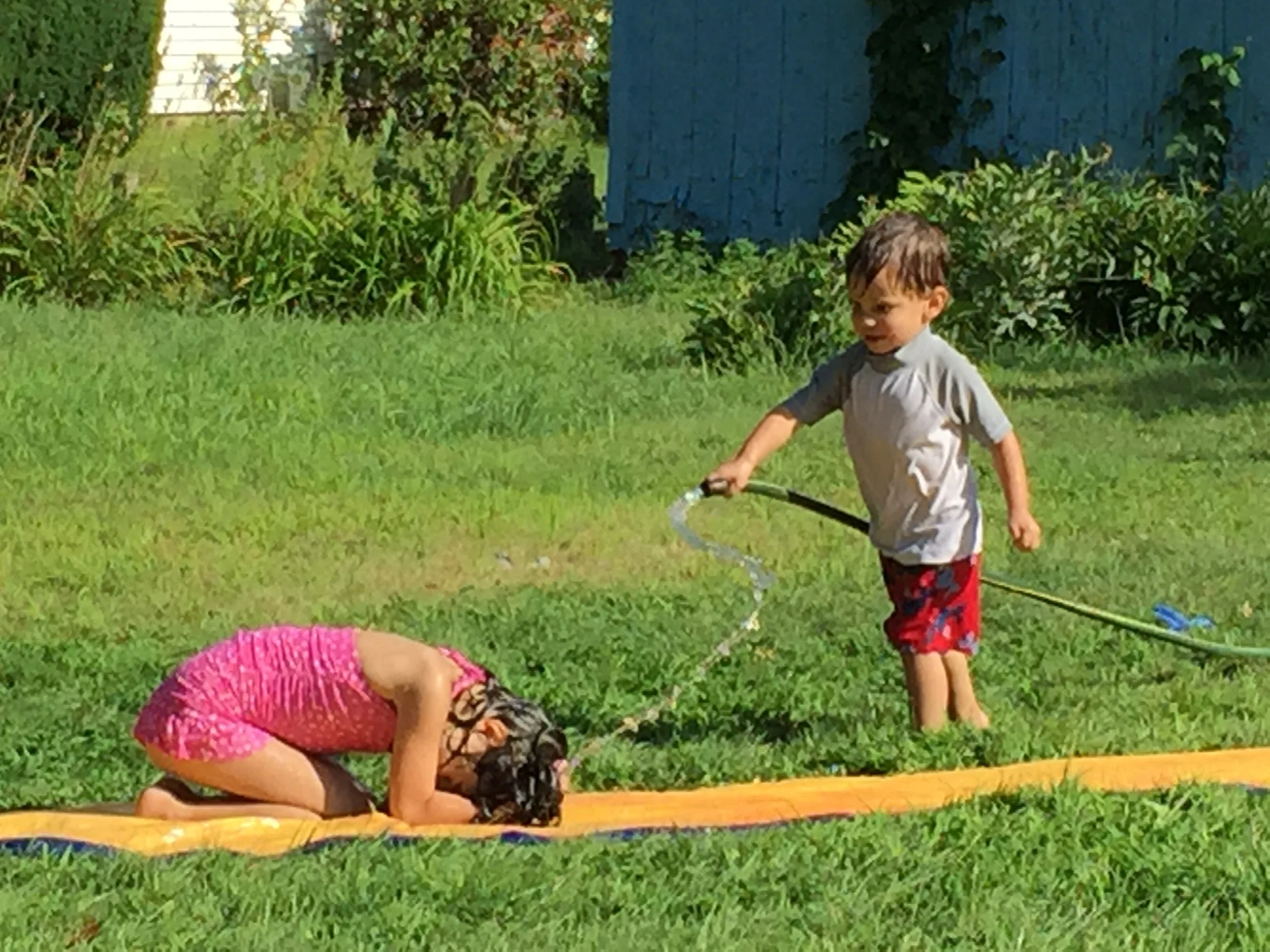 My kids were playing in the backyard with the hose.