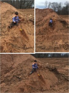 Charlie asked the friend who was taking care of him if he could climb up the enormous dirt pile at the adjacent construction site.