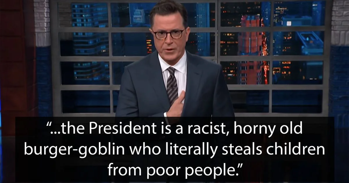 “The President is a racist old horny burger goblin who literally steals children from poor people.”