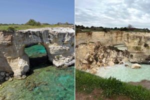 An Italian coastal spot known as “Lovers’ Arch” because of its popularity with courting couples collapsed during heavy storms.